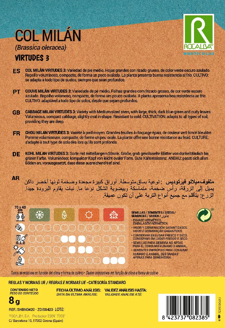 bleuâtre. Pomme volumineuse, compacte, de forme un peu ovale. La plante offre une bonne résistance au