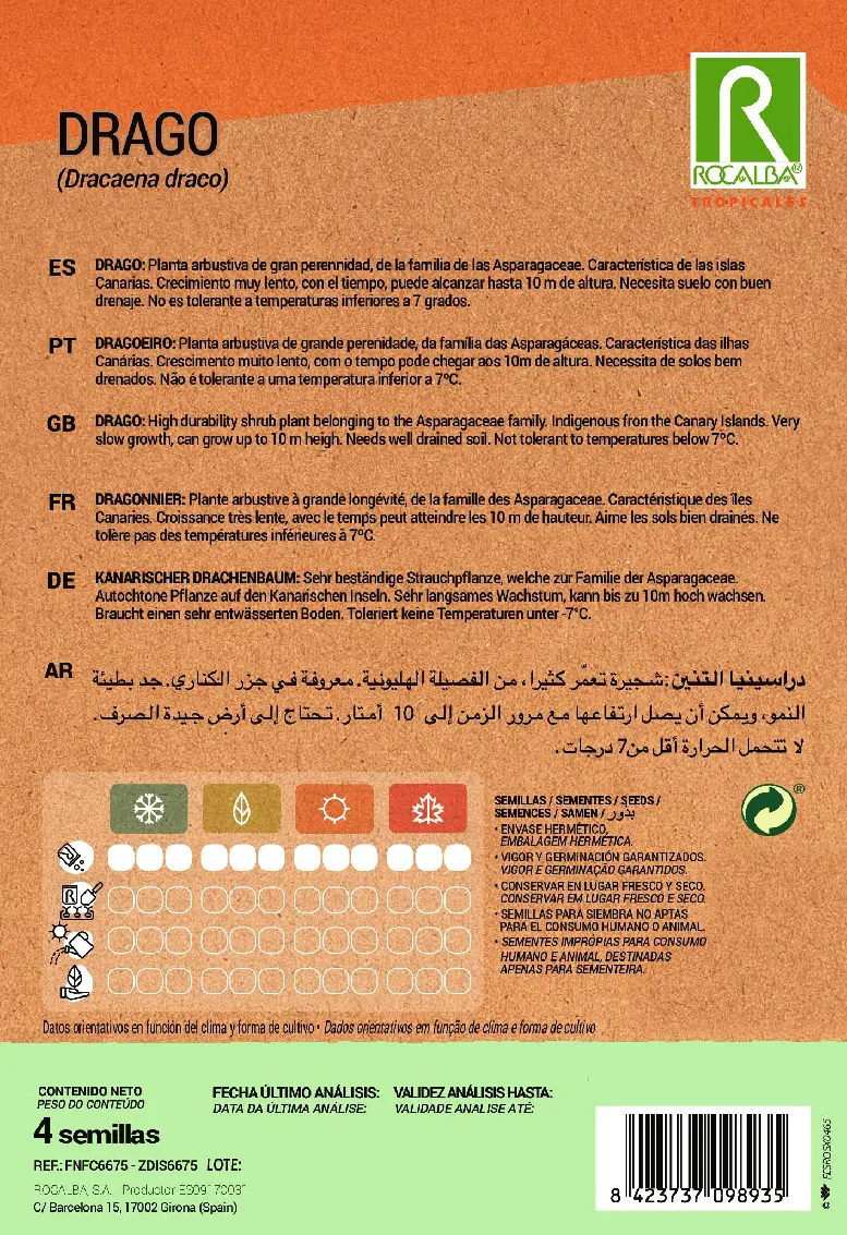 Croissance très lente, avec le temps peut atteindre les 10 m de hauteur. Aime les sols bien drainés. Ne tolère pas des