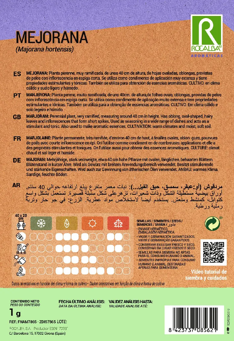 Plante permanente, très ramifiée, d’environ 40 cm de haut, à feuilles ovales, oblongues, pourvues de poils avec courte inflorescence en épi. On l’utilise comme condiment en de nombreuses applications et elle a des propriétés stimulantes et toniques. On l’utilise aussi pour obtenir des essences aromatiques.