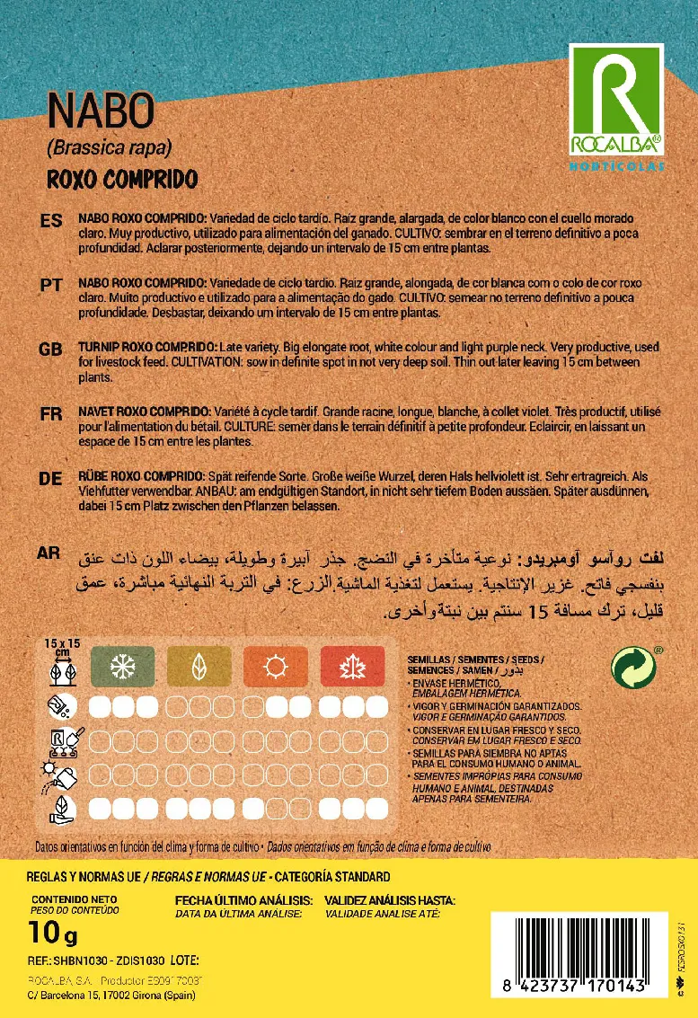 Variété à cycle tardif. Grande racine, longue, blanche, à collet violet. Très productif, utilisé pour l’alimentation du bétail.