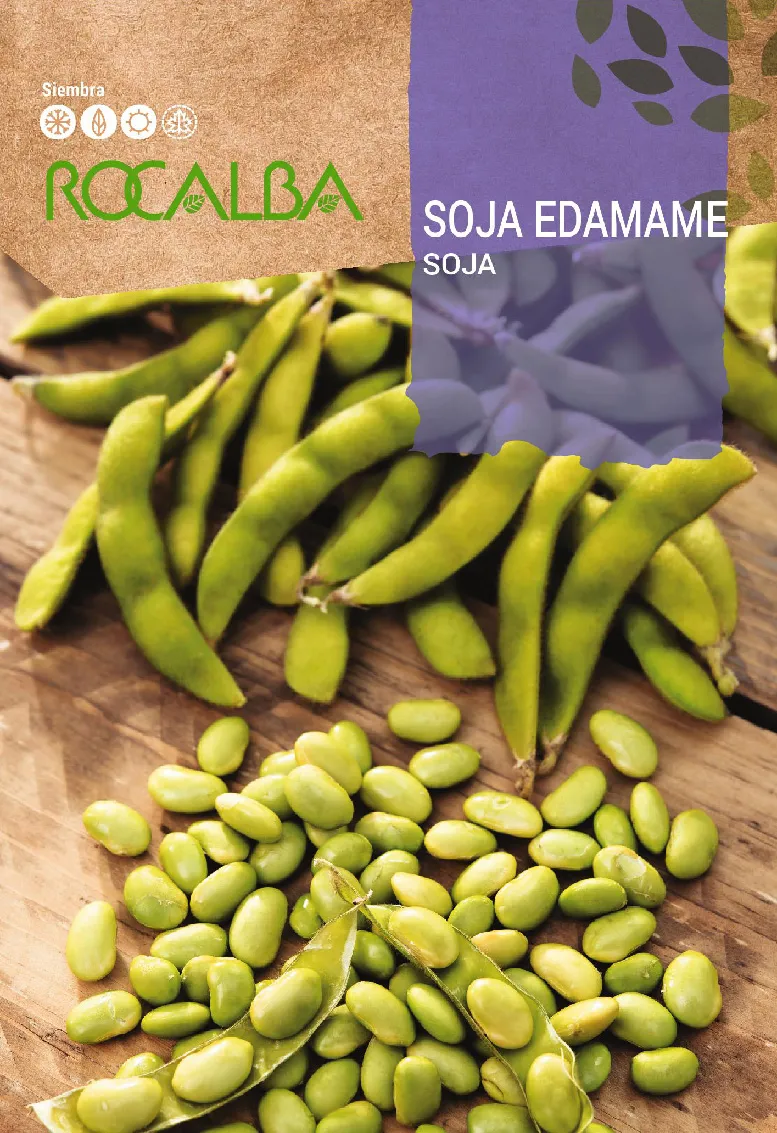 Le soja est une plante annuelle, mesurant 40-60 cm de hauteur. L’edamame est d’origine japonaise, on utilise les gousses immatures, qu’il faut bouillir dans de l’eau salée. Si on laisse jaunir la gousse, le grain devient dur et sec, pouvant alors servir à préparer le tofu ou le miso.
