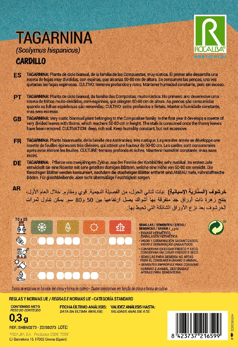 Plante bisannuelle, de la famille des Astéracées, très rustique. La première année se développe une rosette de feuilles épineuses très divisées, qui atteint une hauteur de 50-80 cm. Les cardes sont consommées après avoir éliminé les feuilles.