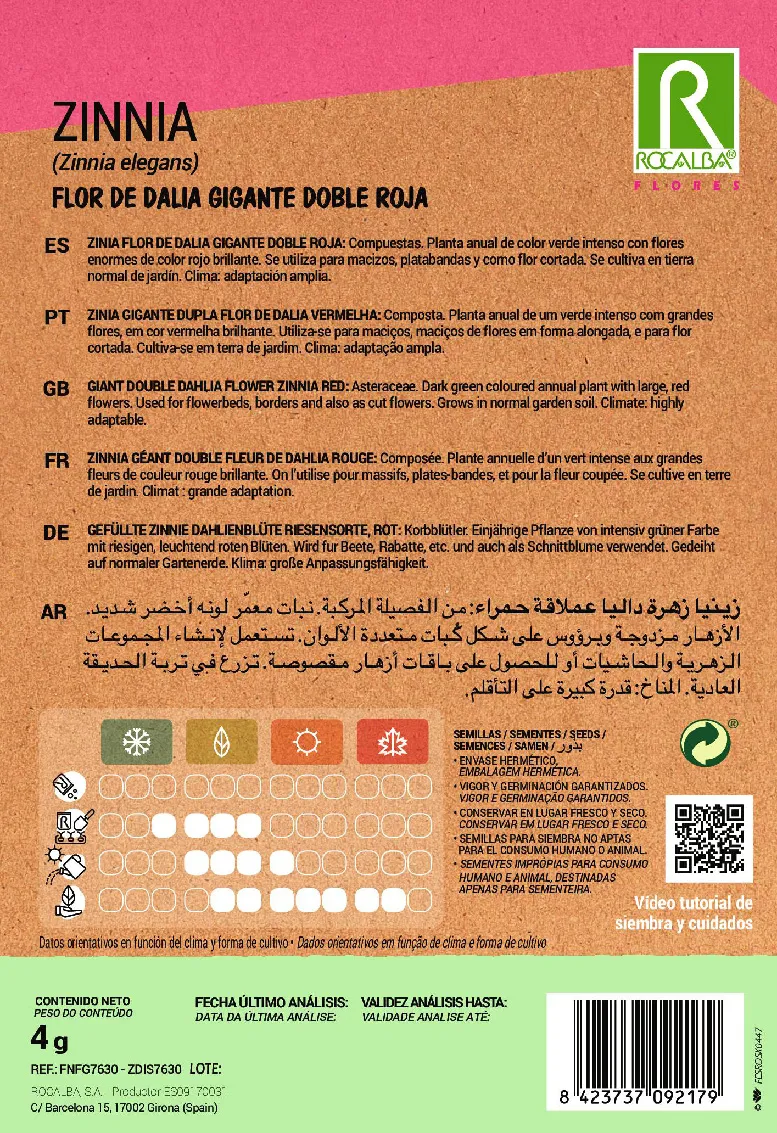 ZINNIA GÉANT DOUBLE FLEUR DE DAHLIA ROUGE